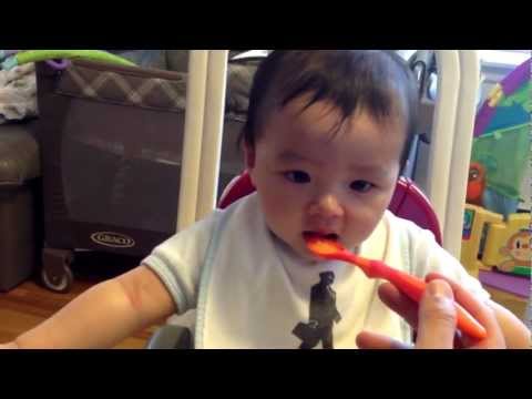 Parenthood Fatherhood Marcus Awkward Hamster "Awkward Hamster" AwkwardHamster funny cute adorable baby infant newborn month old Feed Healthy Organic Natural Home made Homemade Baby Food Bedtime MagicBullet "Magic Bullet" BabyBullet "Baby Bullet" Vitamix Blender Carrot Vege Vegi Vegetable Butternut Squash Rice Congee Cooking Solid Foods